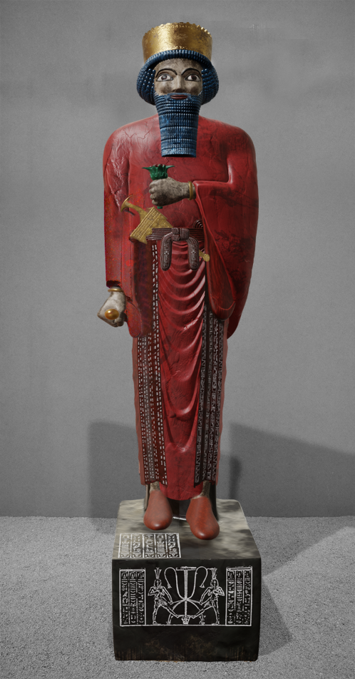 یکی از شگفتانگیزترین آثار بهجامانده از دوران هخامنشی، مجسمه سنگی داریوش بزرگ است که در کاوشهای باستانشناسی در شوش کشف شد و امروزه در موزه ملی ایران نگهداری میشود. این مجسمه از جنس سنگ دیوریت، در سبک و تکنیک کاملاً مصری ساخته شده، اما در محتوای خود نشانههایی از هویت شاهنشاهی هخامنشی را بهوضوح در بر دارد. داریوش در این اثر با پوششی رسمی، ایستاده و با هیبتی شاهانه دیده میشود؛ در پایهی آن، فهرستی از سرزمینهای تابعه امپراتوری و کتیبههایی به خط میخی و مصری حک شده که نمایانگر گستره عظیم و چندفرهنگی حکومت اوست. این مجسمه، نمادی منحصربهفرد از همزیستی هنری و سیاسی میان ایران و مصر در دوره سلطه هخامنشیان بر آن سرزمین است و در عین حال، یکی از نادرترین نمونههای مجسمهسازی پادشاهان ایرانی در دوران باستان بهشمار میآید.