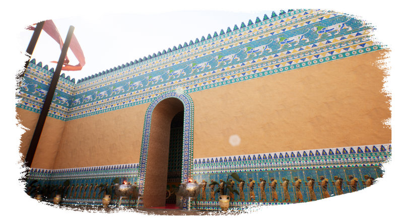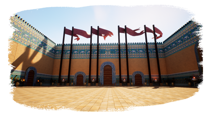 در قلب این تجربهی بازیمحور، حیاط شرقی کاخ شوش قرار دارد. جایی که نقش برجستههای شیرهای بالدار و سربازان گارد جاویدان با دقتی بینظیر بازسازی شدهاند. این حیاط، نهتنها محل عبور و تجمع درباریان بوده، بلکه نمادی از قدرت، نظم و زیباییشناسی هخامنشیان بهشمار میرفته است. در بازی، کاربران میتوانند آزادانه در این فضا حرکت کنند، با عناصر معماری تعامل داشته باشند و حتی اطلاعات تاریخی هر بخش را بهصورت پویا دریافت کنند.